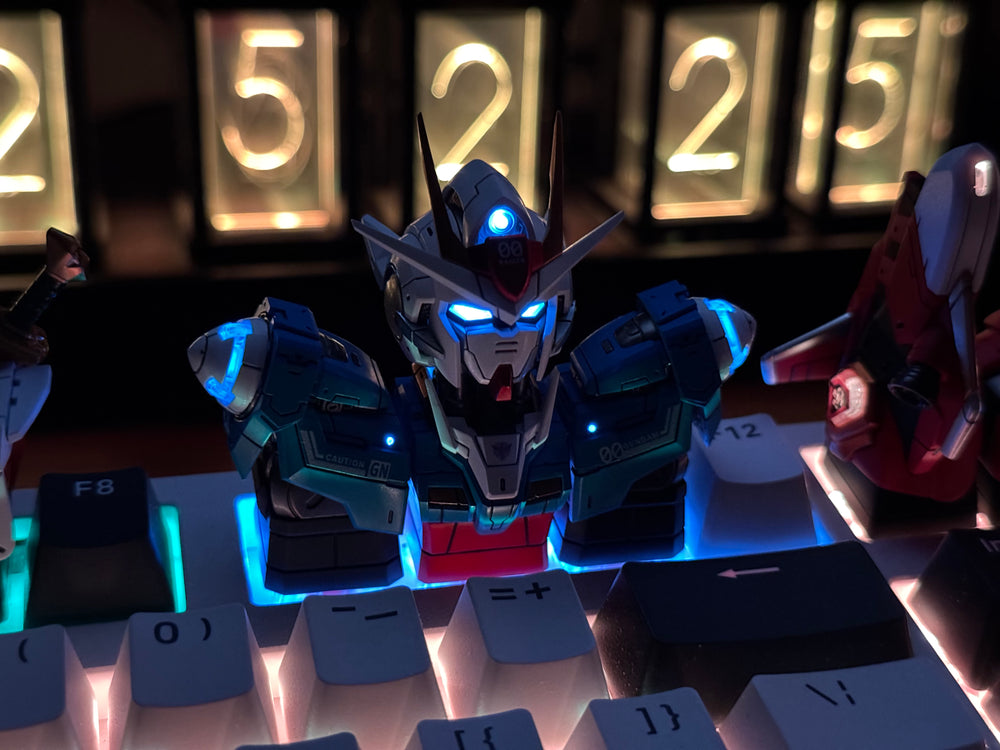 00 Raiser Custom Keycap Set The 00 Raiser Keycap Set is a modular keycap set designed for mechanical keyboards. It includes a head, left shoulder, right shoulder, and one interchangeable backpiece. The keycaps feature translucent sections that allow LED lighting...